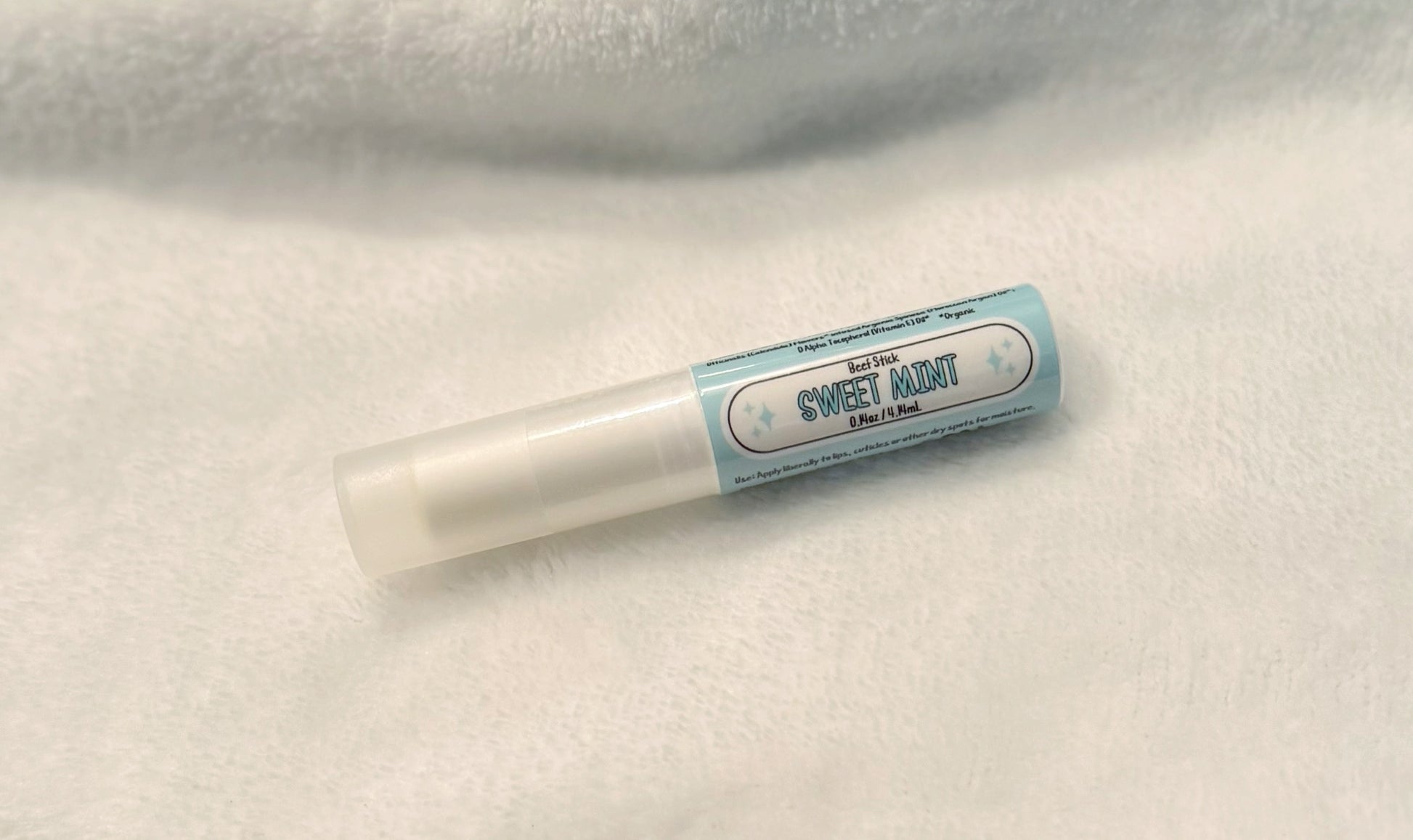 0.14fl oz / 4.14mL Beef Stick Lip Balm (Sweet Mint, Oats & Honey (coming soon), Vanilla Sugar (coming soon))