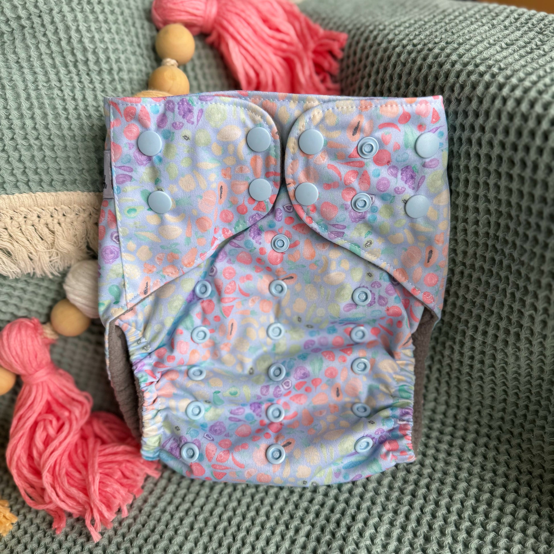- Center indicator snap for finding center of diaper and to snap our inserts into your pockets or covers