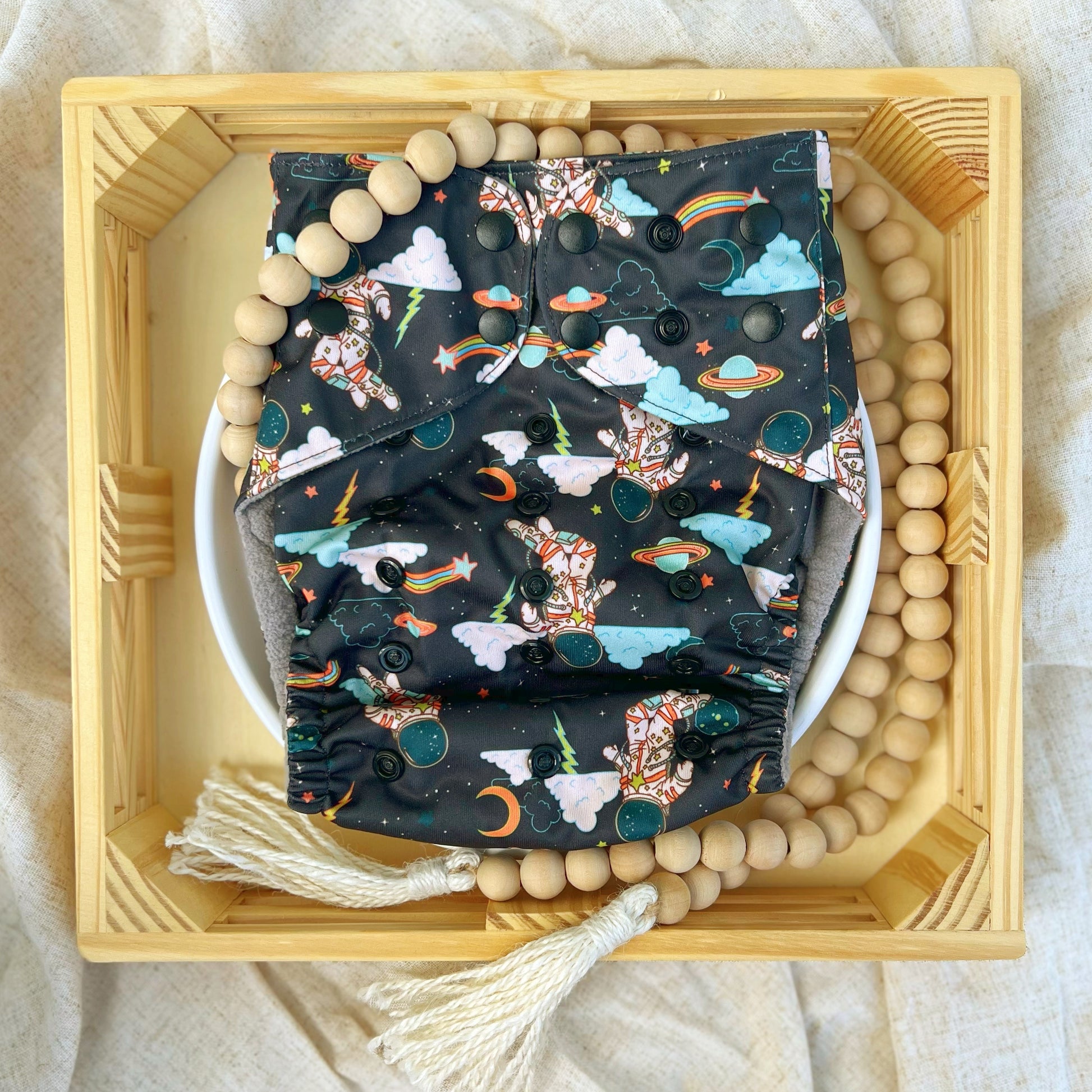 • Center indicator snap for finding center of diaper and to snap our inserts into your pockets or covers